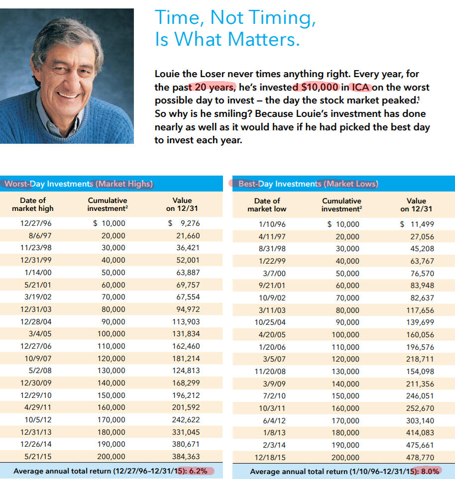"Don’t try to time the market. It’s very, very difficult to do. There may be a couple of people in the world who can do it, but if there are, they’re not telling you." ―Ben Bernanke