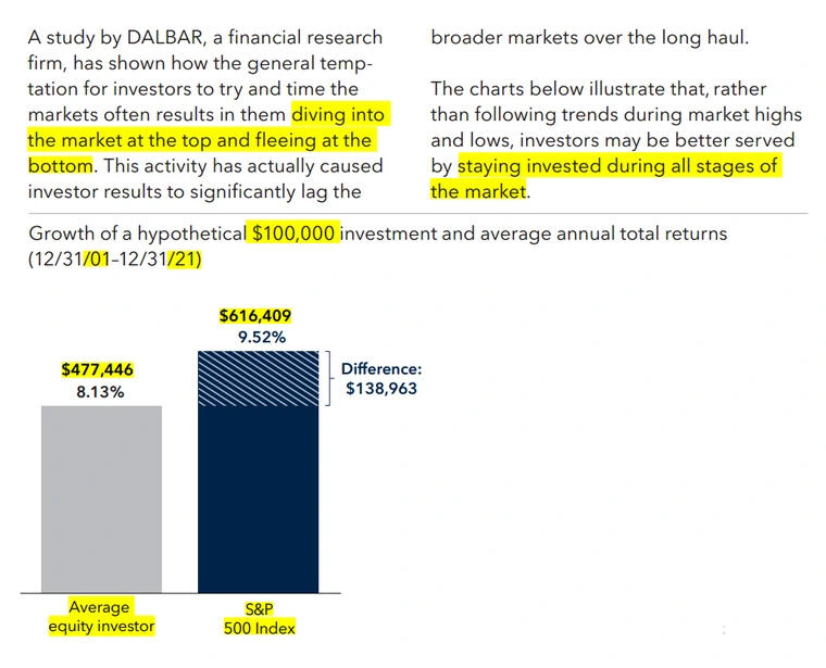In my 35+ years of coaching clients, I've found the differences between the two to be much more pronounced, especially over longer time-frames. Most investors without a coach aren’t disciplined enough to stay on track (ie, staying in the market when it's down).