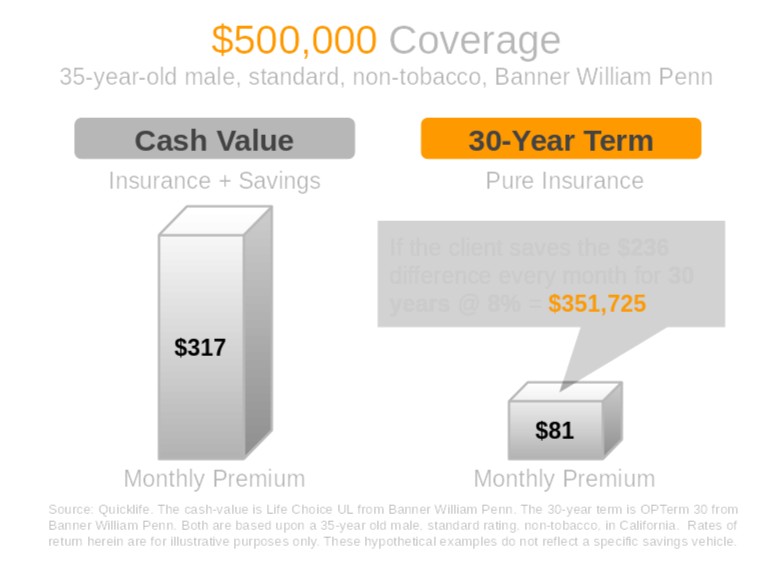 "In the next ten seconds, I'm going to tell you how you can save hours of time and thousands of dollars. Ready? Buy term life insurance.""...maybe you've heard (and have already fallen prey to) the sales pitches from life insurance salespeople, most of whom love selling cash value life insurance because of the huge commissions it pays.""Cash value life insurance is the most oversold insurance and financial product in the history of the industry."